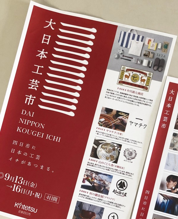 2019.09.15 イベント 大日本工芸品 四日市の近鉄百貨店5階にて 2019年9月13日〜16日 大日本工芸市が開催されます。 四日市の菰野をもっと学ぼうという[こもガク]さんが中心となり、熱い思いでものづくりに取り組んでいるメーカーが14社が展示販売します。 萬古焼の山口陶器さんから、美濃焼からもというお声かけをいただき、出店の運びとなりました。 様々な、ものづくりの方たちとご一緒出来る事が楽しみです。 是非、お立ち寄りください。