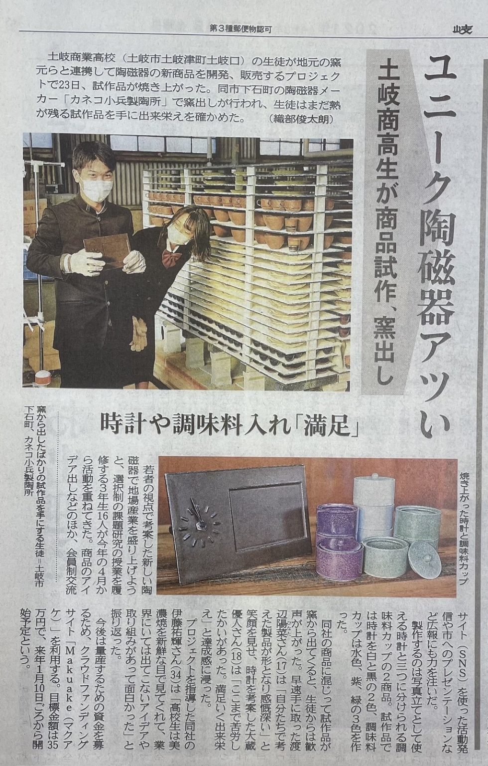 いい商品ができて、高校生が美濃焼のものづくりに興味を持ってもらえるといいですね。