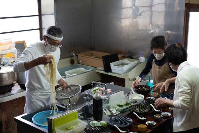 もう70云歳の郁夫さんが打つうどんはコシがあって県外からもお客さんが来る人気店。
