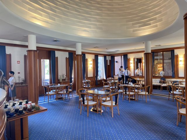 セレモニー前のティータイムには日本から持ち込んだ美濃焼のカップ&ソーサーをヘレンドのカフェで使用してもらい