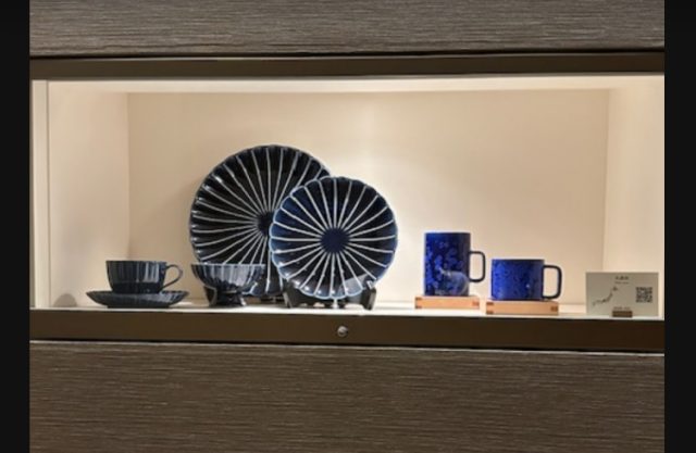 現在は初めの写真のようにぎやまん陶の茄子紺ブルーを展示していただいています。